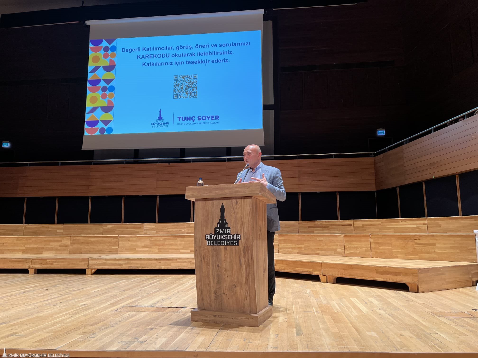 İzmir Büyükşehir Belediyesi İmar ve Şehircilik Dairesi Başkanı Yağmur Han Şenel, teknik bir sunum yaparak katılımcıları bilgilendirdi.