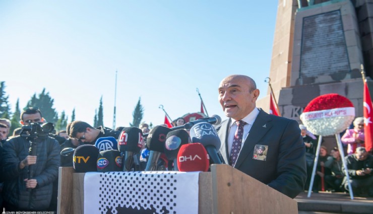 Başkan Soyer ayrıca, “Milyonlarca Kubilay, milyonlarca Hasan, milyonlarca Şevki Cumhuriyet devrimlerinin başında ilk günkü gibi canla başka nöbet tutuyoruz, tutmaya devam edeceğiz. Bizler, sen başla bitiren bulunur diyen Hasan Tahsin’in evlatlarıyız. Siyasi İslamcılıkla toplum mühendisliği yapılmasına, dini referanslar ile eğitim sisteminin şekillendirilmesine, bu ülkenin aydınlık yüzü, ilerici ve devrimci şehri İzmir asla geçit vermez. Bizi bu yoldan kimse döndüremez. Cumhuriyetin devrimlerine kimse göz dikemez. 100 yıldır Cumhuriyet nesilleri yetiştiren eğitim yuvalarına, okullarımıza sonuna kadar sahip çıkacağız. Ulu Önderimizin “en büyük eserim” dediği Cumhuriyetimize sahip çıkmak istiyorsak şu üç şeye her zamankinden daha çok ihtiyacımız var. Cesarete, bir arada olmaya ve umuda. Biliyorum ki bizler bu üç erdeme de sahibiz. Bugün burada Cumhuriyet’in devrimlerini hazmedemeyen halk düşmanlarına karşı, Cumhuriyetimizin 100’üncü yılında o devrimleri ölümsüzleştireceğimize bir kere daha ant içiyoruz. 93 yıl önce bugün, Cumhuriyet Şehitlerimiz, bir avuç hain karşısında nasıl dimdik durduysa, biz de bu karanlığın karşısında öyle dimdik duracağız. Özgürlüğümüze, demokrasiye, barışa ve adalete zarar vermeye çalışanlara asla geçit yok. Okullarımızı tarikatlara açmaya çalışan karanlık zihniyete asla izin vermeyeceğiz. Biz Mustafa Kemal’in İzmir’iyiz. Cumhuriyet devrimlerinin ebedi bekçileriyiz. Şimdi sıra bizde. Yaşasın demokrasi. Daima laiklik. Daima Cumhuriyet” ifadelerini kullandı.