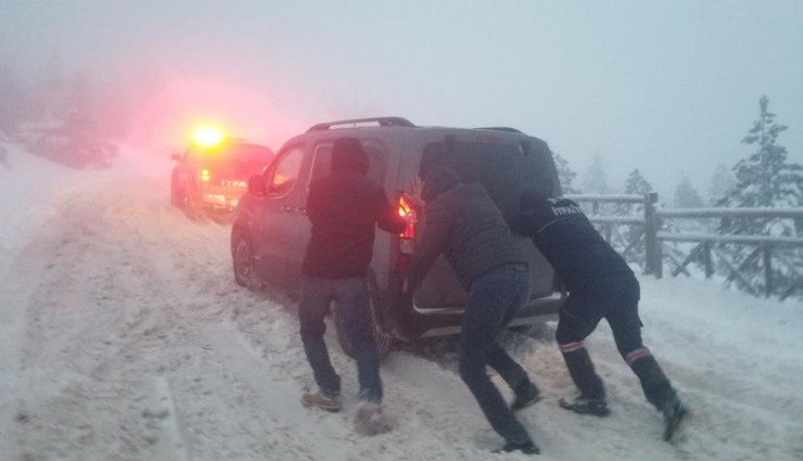 Manisa'nın Spil Dağı Milli Parkı'na kar keyfi yaşamak için çıkan onlarca vatandaş bastıran tipide karda mahsur kaldı.