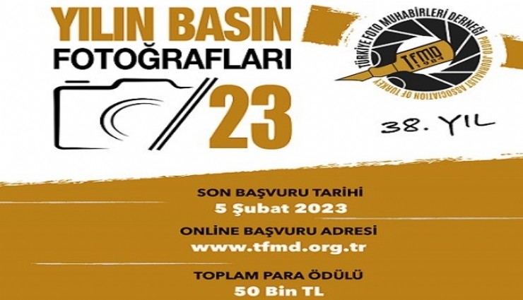 TürkiyeFoto Muhabirleri Derneği'nin 38 yıldır aralıksız olarak düzenlediği “Yılın Basın Fotoğrafları” yarışması’nın 2023 yılı takvimi açıklandı. Yarışmanın 38. yılında toplam para ödülü 50 bin Lira. Derneğin web sayfası www.tfmd.org.tr adresinden yapılan başvurulan için son katılım tarihi, 5 Şubat 2023.