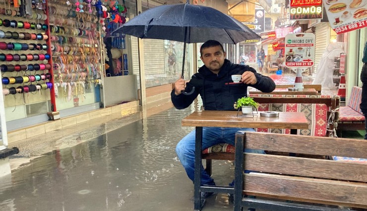 Tuncer, yağmurun esnafa büyük zarar verdiğini, her yağışta Kemeraltı’nın sular altında kaldığını savunarak, “Yağmura çare yok, bari kahve keyfi yapayım” dedi.