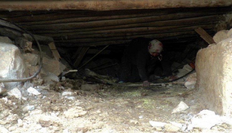Adıyaman’da ineği enkaz altında sıkışan ve çıkamayan kadın, sürünerek girdiği enkazın altındaki ineğini besliyor.
