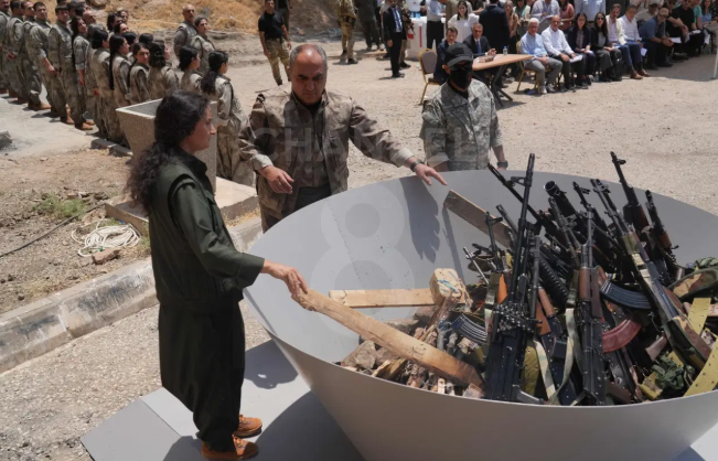Terör örgütü PKK elebaşı Abdullah Öcalan'ın çağrısı sonrası kendisini feshetme kararı alan terör örgütü PKK, bugün Irak'ın Süleymaniye kentinde düzenlenen törenle silah bıraktı.