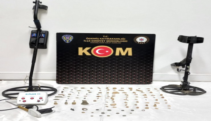 Ödemiş Kaçakçılık ve Organize Suçlarla Mücadele Grup Amirliği ekipleri, ilçede tarihi eser kaçakçılığı yaptığı belirlenen 2 kişiyi yakalamak için çalışma başlattı. Belirlenen adrese gerçekleştirilen operasyonda 108 obje, 13 sikke ve 3 dedektör ele geçirildi. Olayla ilgili S.Y. ve İ.Y. adlı şüpheliler gözaltına alındı. Şüphelilerin emniyetteki işlemlerinin sürdüğü öğrenildi.