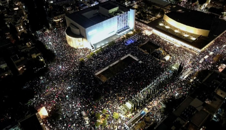 İsrail’de hükümet karşıtı protestolar sürüyor. Ülkenin farklı noktalarında toplanan binlerce kişi Başbakan Binyamin Netanyahu ve hükümetini İsrailli esirleri yalnız bırakmakla suçladı. Eyleme katılan esirlerin aileleri, İsrail’in anlaşma yapmadan savaşı bitirmek zorunda kalacağını uyarısında bulundu. Eylemciler Başbakan Benjamin Netanyahu'nun görevden alınması, erken seçimlere gidilmesi ve Hamas'ın elindeki rehinelerin serbest bırakılması için bir anlaşma yapılması çağrısında bulundu. Kudüs, Hayfa, Caesarea ve Rehovot’ta gerçekleştirilen gösterilerin yanı sıra başkent Tel Aviv’de gerçekleştirilen hükümet karşıtı protestoda tansiyon yükseldi. Tel Aviv’deki eyleme 80 bin kişinin katıldığı ifade edildi.