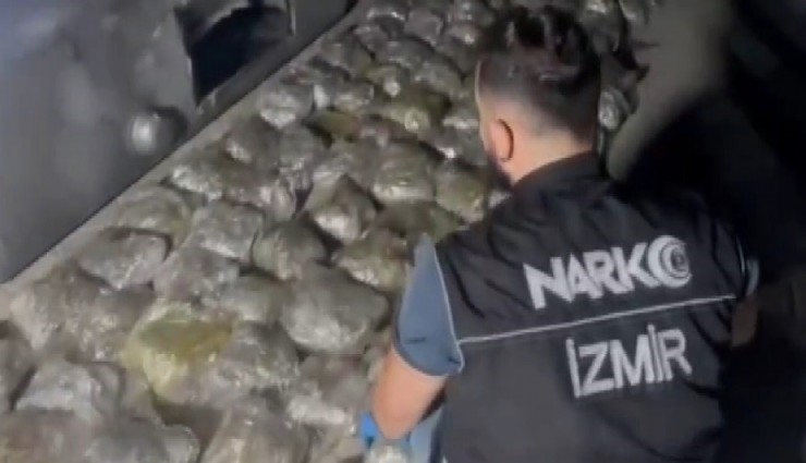 İzmir İl Emniyet Müdürlüğü Narkotik Suçlarla Mücadele Şube Müdürlüğü ekipleri, bir tır içerisinde yüklü miktarda uyuşturucu madde bulunduğu bilgisi üzerine harekete geçti. Tırı durduran ekipler, narkotik köpeğinin akaryakıt deposuna tepki göstermesi üzerine burayı kontrol etti. Yapılan kontrolde akaryakıt deposu içerisinde 57 kilo 900 gram skunk esrar maddesi ele geçirildi.