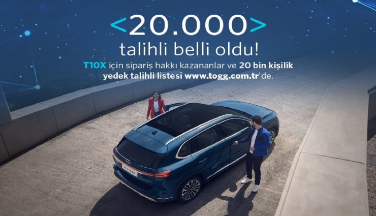 Yerli ve milli elektrikli otomobil Togg’un ‘T10X’ modelinin ilk sahipleri yapılan çekilişle belli oldu. T10X almaya hak kazanan kişilerin listesi Togg’un resmi internet sitesi ile Trumore uygulaması üzerinden duyuruldu. T10X modeli için ön sipariş veren 177 bin 467 kişi arasından 20 bin kişi yerli otomobil sahibi oldu. Ayrıca, 2023 yılı için planlanan teslimatlarda iptallerin yaşanması halinde yedek listedeki bulunan 20 bin kullanıcı arasından yeni isimler seçilecek.