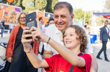İzmir Büyükşehir Belediye Başkanı Dr. Cemil Tugay, 94. İzmir Enternasyonal Fuarı’nın (İEF) üçüncü gününde minik misafirlerle bir araya geldi. Büyükşehir Belediyesi’nin Buca Göksu, Konak Ballıkuyu ve 1. Kadriye mahallelerindeki Dayanışma Noktaları’ndan davet edilen 27 anne ve 50 çocuk, Kültürpark’ta Başkan Tugay ve eşi Öznur Tugay ile keyifli bir gün geçirdi.