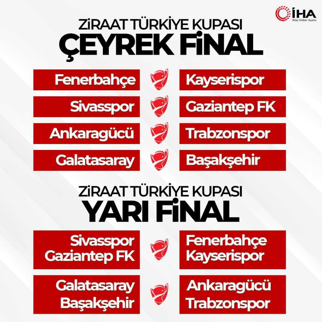 Ziraat Türkiye Kupası çeyrek ve yarı final eşleşmeleri şu şekilde: