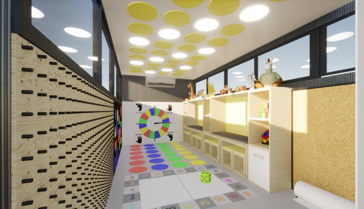 Yaşar Üniversitesi İç Mimarlık ve Çevre Tasarımı Bölümü öğrencileri, depremzede çocuklar için eğitim, oyun ve terapi alanlarının yer aldığı konteynerler tasarladı.