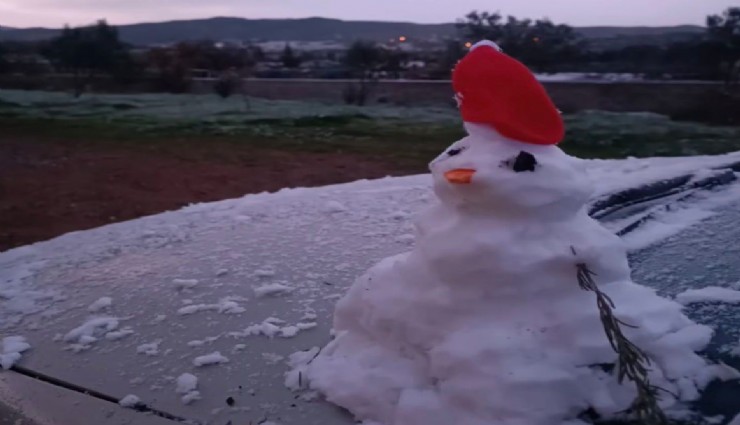 İzmir'in Urla ilçesinin yüksek kesimlerinde kar yağışı etkili oldu.