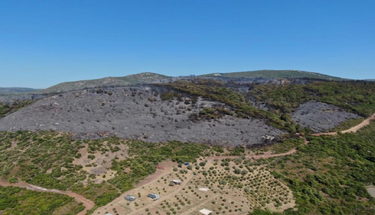 İzmir’in Urla ilçesinde çıkan orman yangınının oluşturduğu hasar havadan görüntülendi. Görüntülerde, ormanlık alanın önemli bir kısmının tamamen siyah külle kaplandığı yer alıyor.