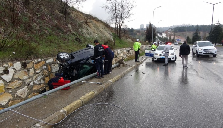 Uşak'ta, İzmir istikametine seyir halindeyken kontrolden çıkan otomobil, yol kenarındaki aydınlatma direğine çarpıp şarampole devrildi. Kazada araç sürücüsü yaralanarak hastaneye kaldırıldı.