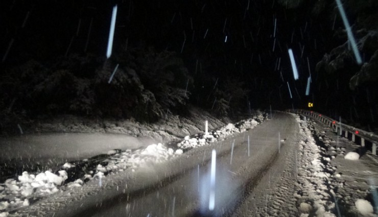 İzmir'de halk arasında beklenen kar yağışı nihayet gerçekleşti… Dün akşam saatlerinde başlayan yağmur, kentin birçok ilçesindeki rakımı yüksek bölgelerinde gece saatlerinden itibaren yerini yoğun kar yağışına bıraktı. Kar yağışı nedeniyle Sabuncubeli Geçidi’nde de iş makineleriyle yolda kar küreme ve tuzlama çalışmaları yapıldı.
