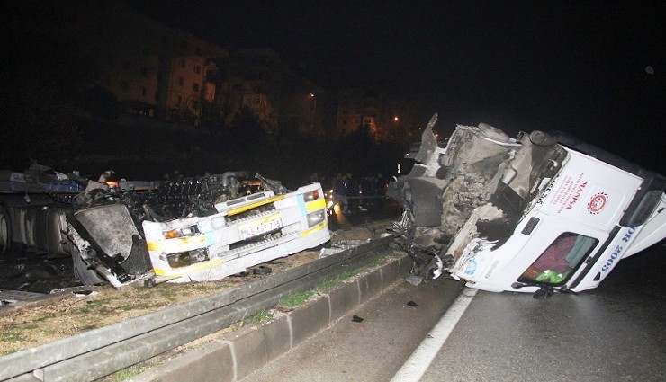 Manisa'nın Kula ilçesinde yağışlı havanın da etkisiyle kayganlaşan yolda kontrolden çıkan tır, aynı yönde seyreden başka bir tıra arkadan çarpıp orta refüje çıktı. Tırın kupa bölümü orta refüjü aşarak karşı şeride geçerken, ikiye bölünen tırın kupası kazanın şiddetini gözler önüne serdi.