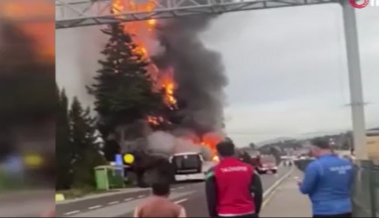 Yalovaspor futbol takımını taşıyan otobüs alevlere teslim oldu. Yangında otobüs küle döndü.