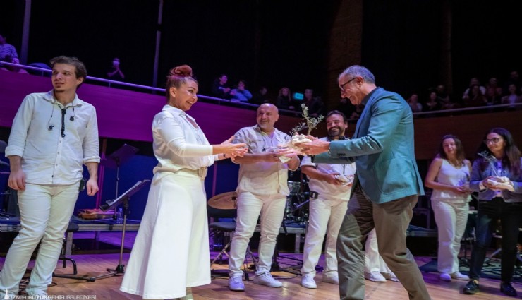 Ardından İzmir Büyükşehir Belediyesi Genel Sekreter Yardımcısı Ertuğrul Tugay ve Yaşar Kemal’in eşi ve Yaşar Kemal Vakfı Başkanı Ayşe Semiha Baban Gökçeli grup üyelerine barışın simgesi zeytin fidanlarını armağan etti.