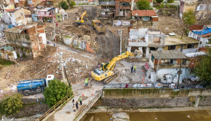 İzmir Büyükşehir Belediye Başkanı Tunç Soyer’in çabalarıyla kentin 2026’da ev sahipliği yapmaya hak kazandığı Uluslararası Bahçe Bitkileri EXPO’sunun (Botanik EXPO 2026) hazırlıkları kapsamında Yeşildere Vadisi’nde kamulaştırılan binaların yıkımları devam ediyor. İzmir’in sosyal donatı ve yeşil alanını artıracak dev proje için Atatürk Maskı’nın altından başlayarak İZBAN hattı ile Meles Deresi ve Yeşildere Caddesi arasında kalan bölgede çalışmalar sürüyor. İzmir Büyükşehir Belediyesi Fen İşleri Dairesi tarafından yürütülen yıkım çalışmaları kapsamında Konak’ın Lale, Vezirağa ve Küçükada mahalleleri içerisinde kalan toplam 76 binanın yıkımı tamamlandı.