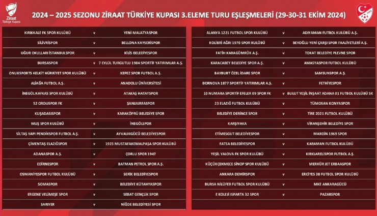 Ziraat Türkiye Kupası 3. Eleme Turu eşleşmeleri şu şekilde: