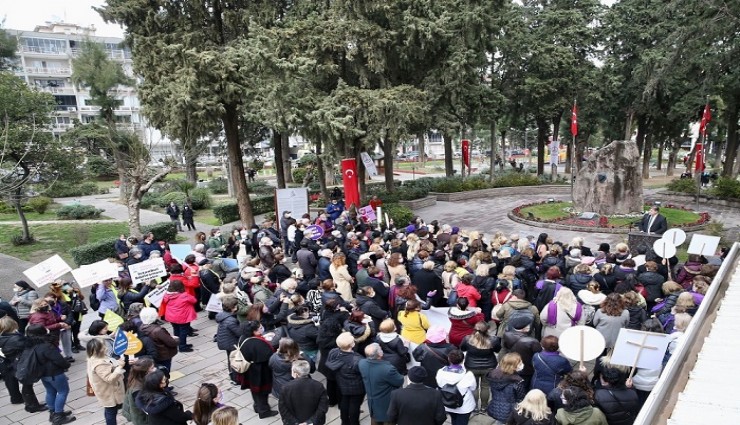 CHP Karşıyaka Kadın Kolları Başkanı Alev İldeniz ise törendeki konuşmasında şunları kaydetti: “Tarih boyunca kadın cesaretiyle, gücüyle, farkındalığıyla, mücadelesiyle hep ön saflarda yer aldı. Bugün kadınların sahip olduğu her hakta yine biz kadınların emeği ve gücü var. Ne acı ki günümüz Türkiye'sinde iktidarın izlediği kadını hiçe sayan politikalar sebebiyle artık istisnasız her gün yurdumuzun dört bir yanından gelen kadın cinayeti, kadına şiddet, taciz gibi kahredici haberlerle nefessiz kalıyoruz. Zaten etkin uygulanmaktan imtina edilen ve bir gecede keyfi bir karar ile çekilen ‘İstanbul Sözleşmesi Yaşatır’ demeye devam edeceğiz. Ta ki bu anlamsız adım geriye çekilene kadar...”