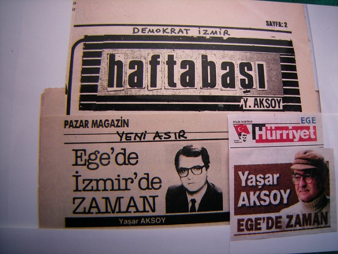 Yaşar Aksoy’un çalıştığı gazetelerdeki köşe yazısı başlıkları..