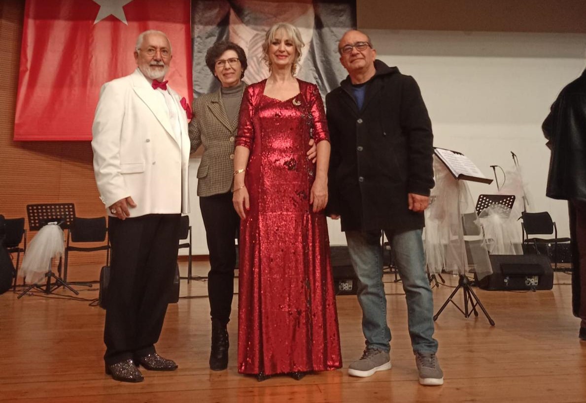 Konser sonrasında, Müzeyyen Senar’ın Bursa’da yaşayan kızı Sebile Türksoy Göktürk, koro şefi Gülsüm Aydoğdu Anafarta ve bir koro üyesiyle bu anı fotoğrafını çektirdik.