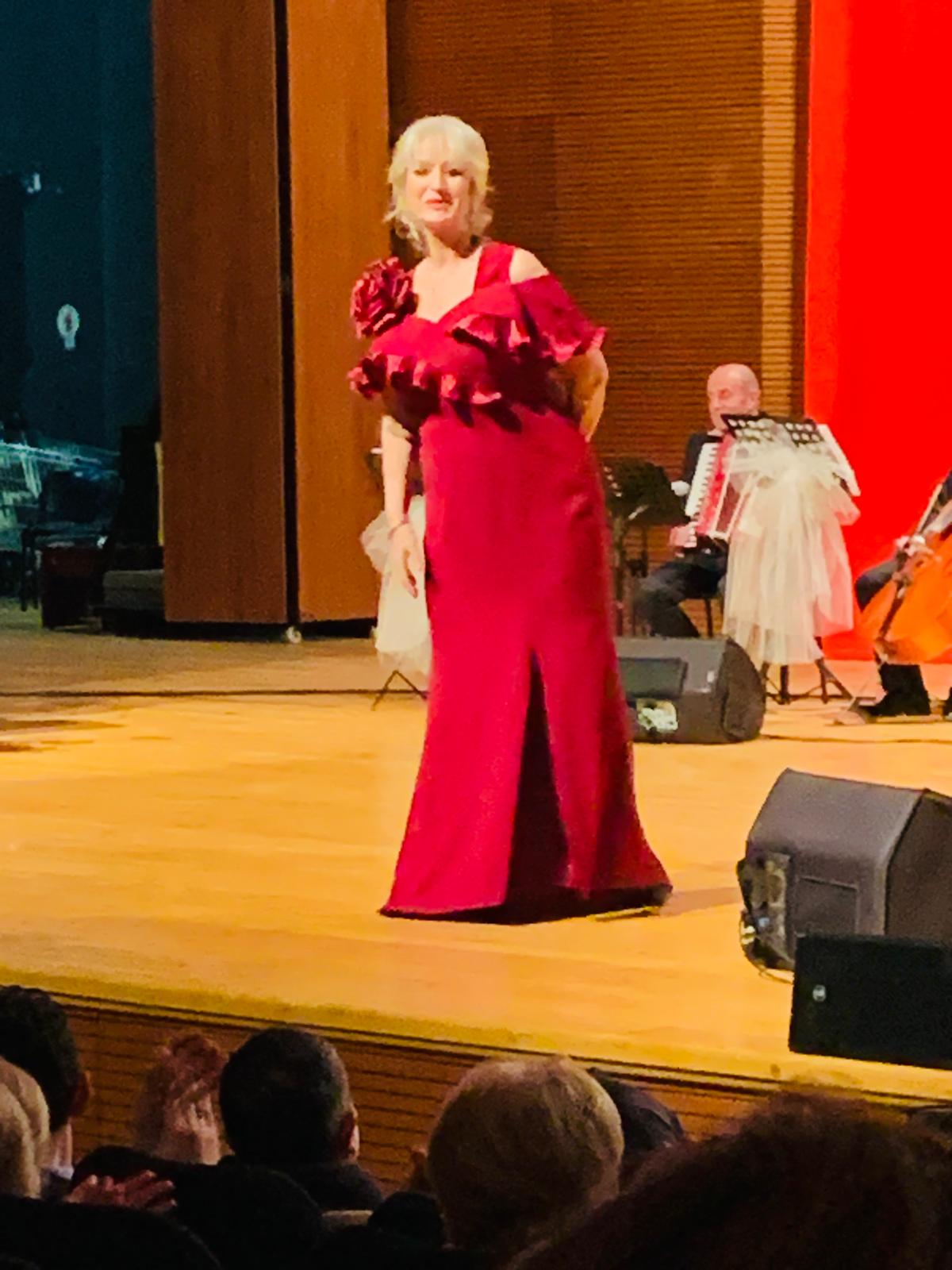 Gülsüm Aydoğdu Anafarta, sahneye müziğimizin divası Müzeyyen Senar’ın bir konserinde giydiği elbiseyle geldi.